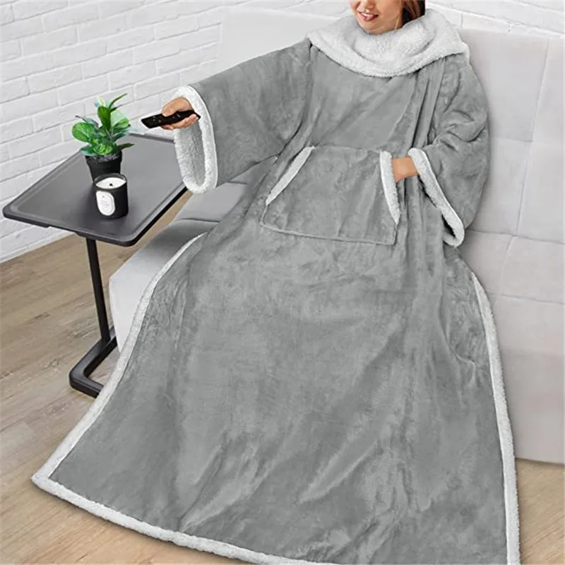 Wearable Blanket With Sleeve TV Sofa Blankets For Men Women Thicken Fleece Lazy Blanket Winter Blue Adult Cozy Soft Throw Nap Blanket