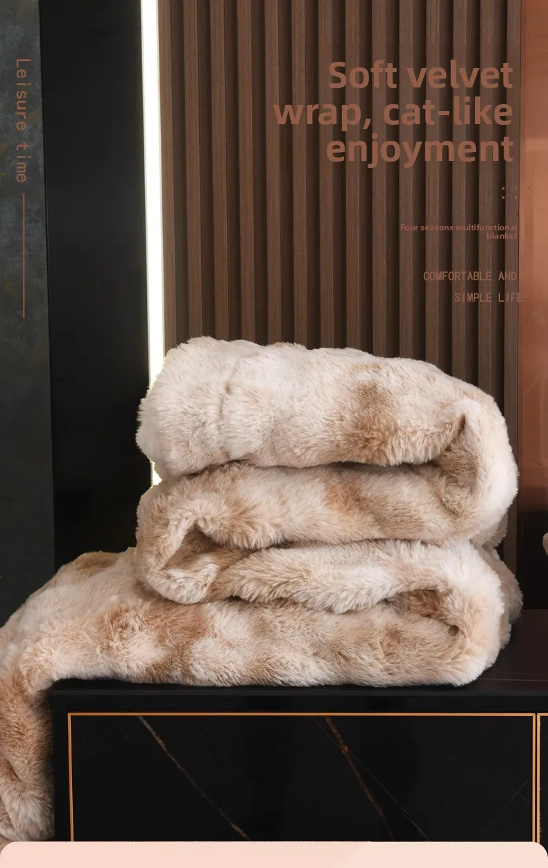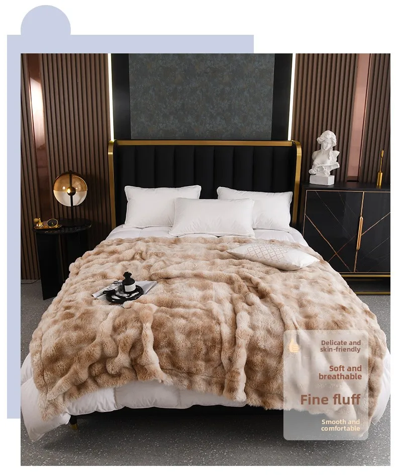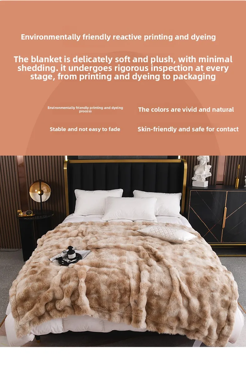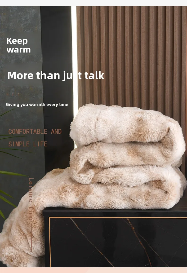 Crafted from 100% polyester, this Tuscan rabbit fur double-layer blanket offers a luxurious feel and lasting durability.