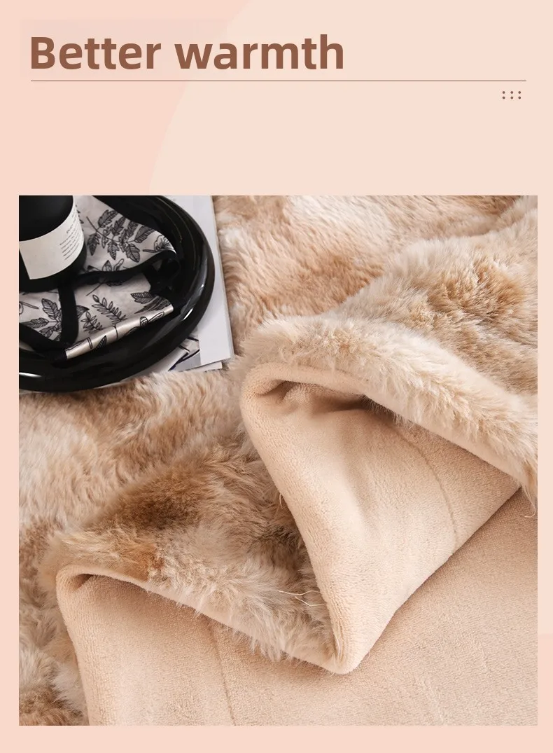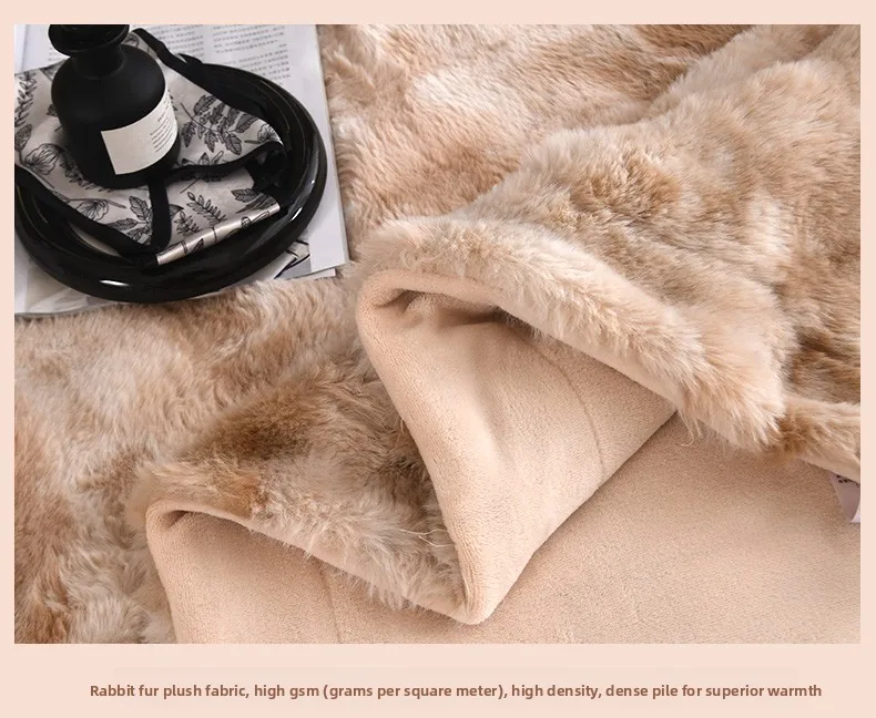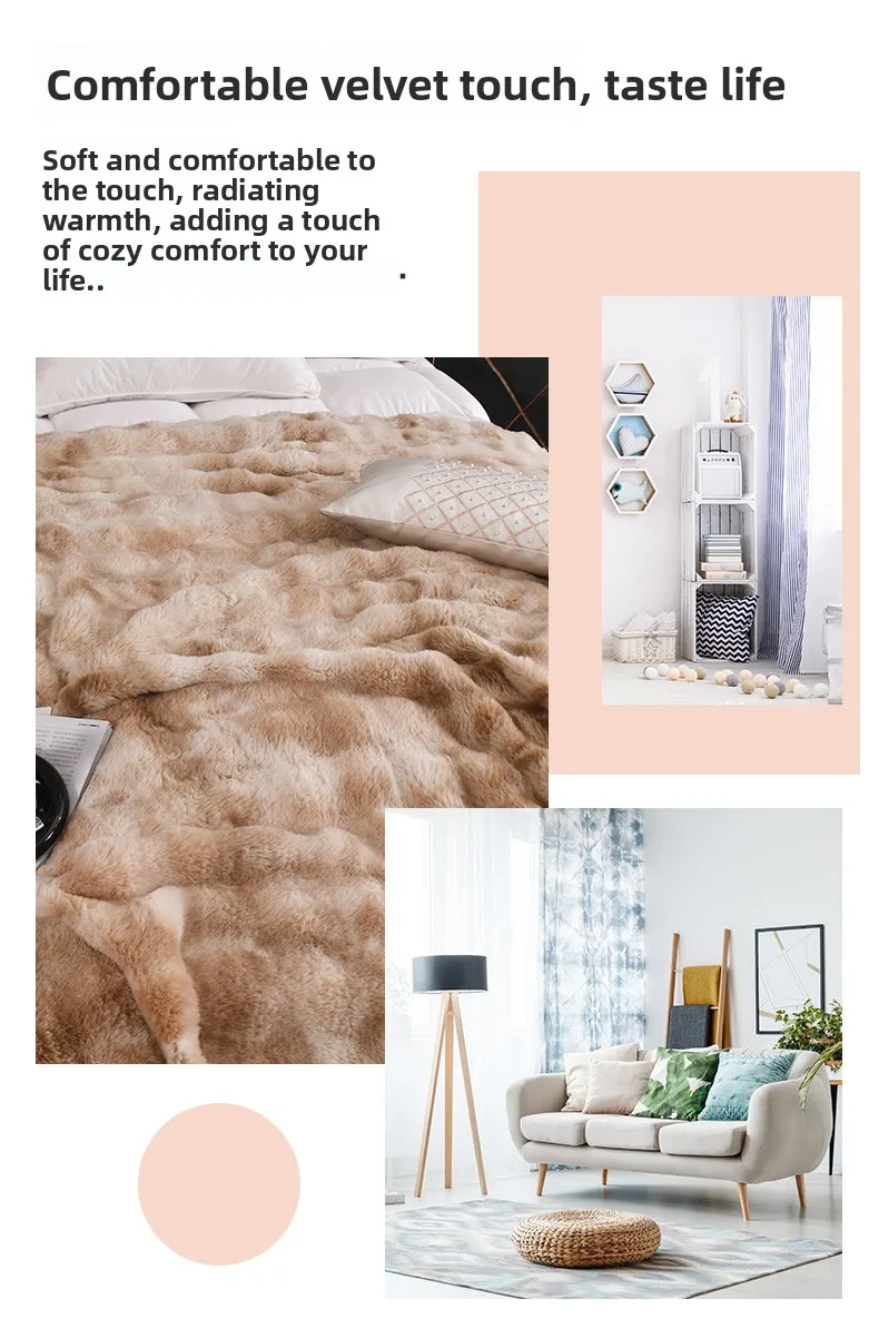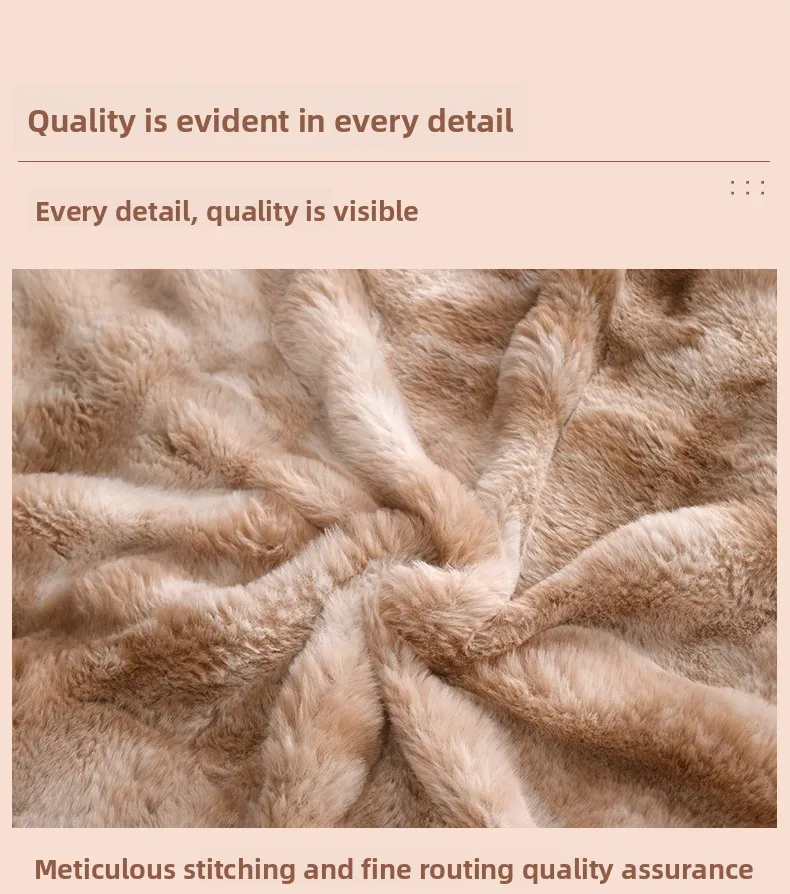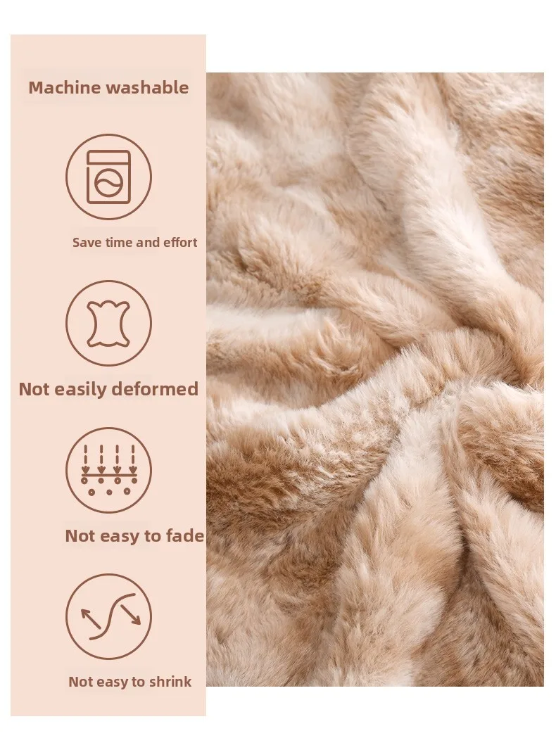 Crafted from 100% polyester, this Tuscan rabbit fur double-layer blanket offers a luxurious feel and lasting durability.