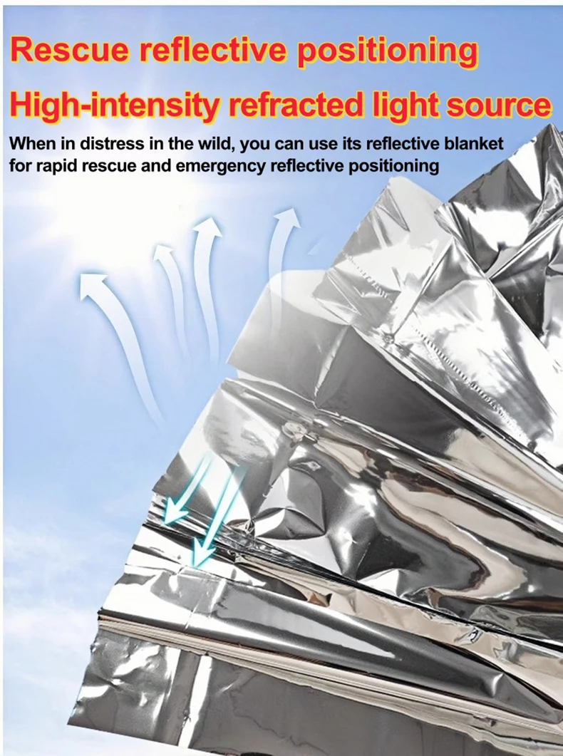 1.Reflective signage: Emergency thermal blanket can serve as reflective film, indicating rescuers when they need it. Increase your visibility in situations where you need help, making it an essential survival tool.