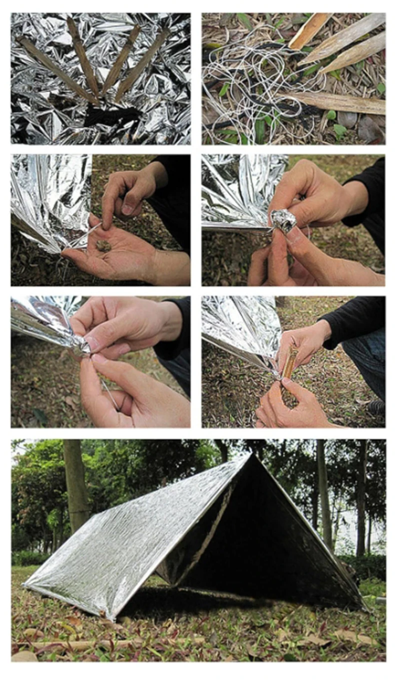 2.Versatile use in rainy weather: On rainy days, aluminum mylar thermal blanket can be used as rain coat or extended as rain shelter. It helps keep you dry and provides a comfortable space away from the drain.