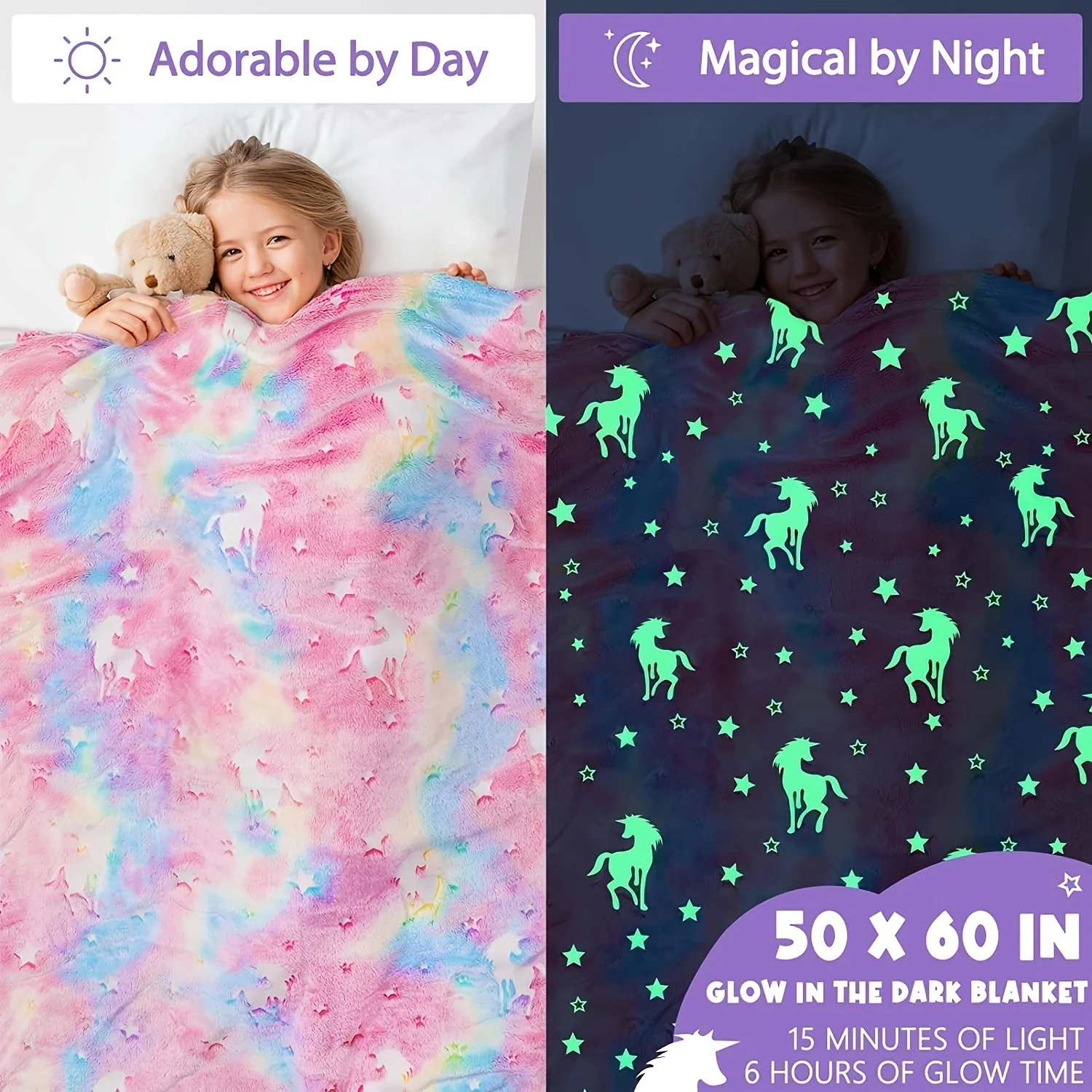☆[Unicorns Gifts For Girls]:Our unicorn blankets are gifts for girls/boys.As 1-10 year old girl birthday gifts or surprise your kids on Christmas, Halloween, Easter, Thanksgiving any occasion.Cool glow blanket gift ideas inspires fun for kids and is the best guardian of the children at night.