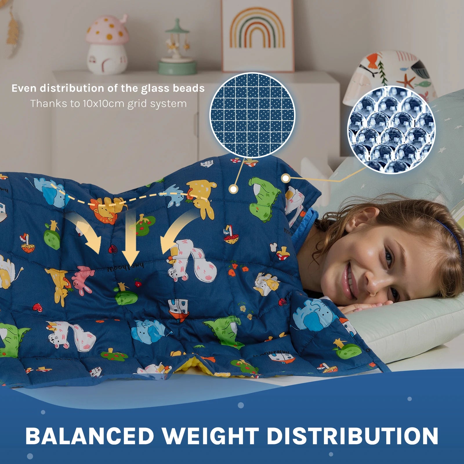 Soft and flexible thickness: the heavy blanket with odourless, non-toxic and hypoallergenic glass beads has a square seam of 10 x 10 cm to distribute the weight evenly without the glass beads accumulating. In this way, the anti-stress blanket provides gentle and even pressure for a peaceful night's sleep