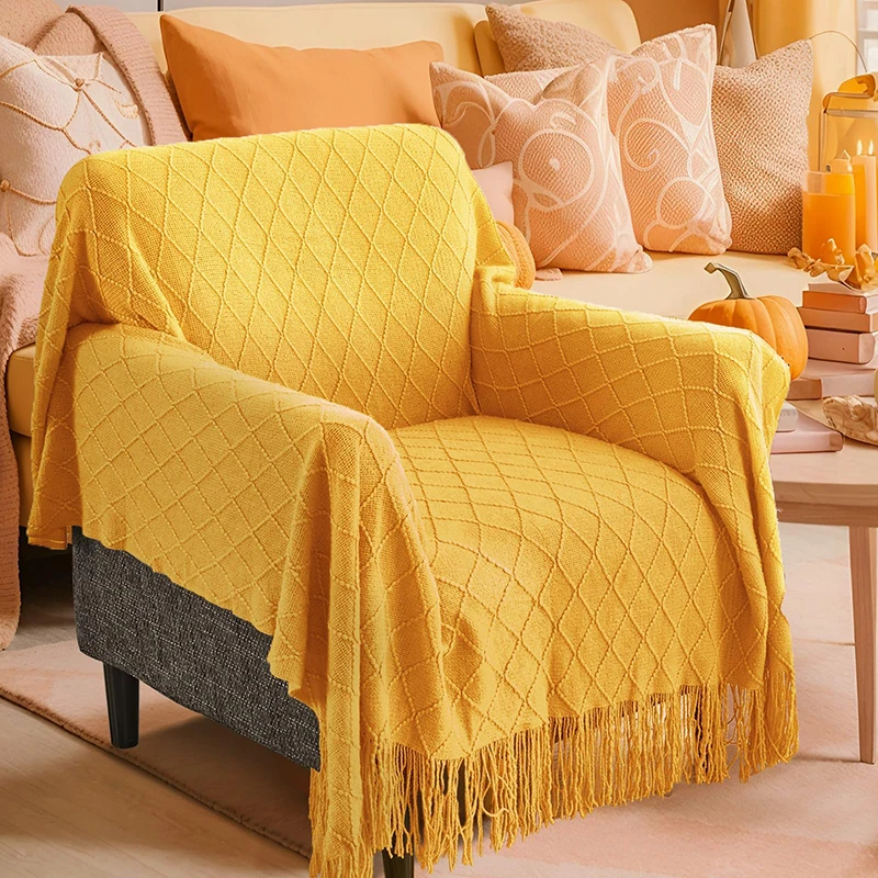【GIFT IDEAS】: Special knitted diamond patterns add a unique accent to your room and people draping it as a shawl. Very suitable for tasteful homeowners. Throw blanket for women, classic but not too tacky as a housewarming gift. Tips: Due to different lighting, display settings, or resolutions, the difference in color happens.